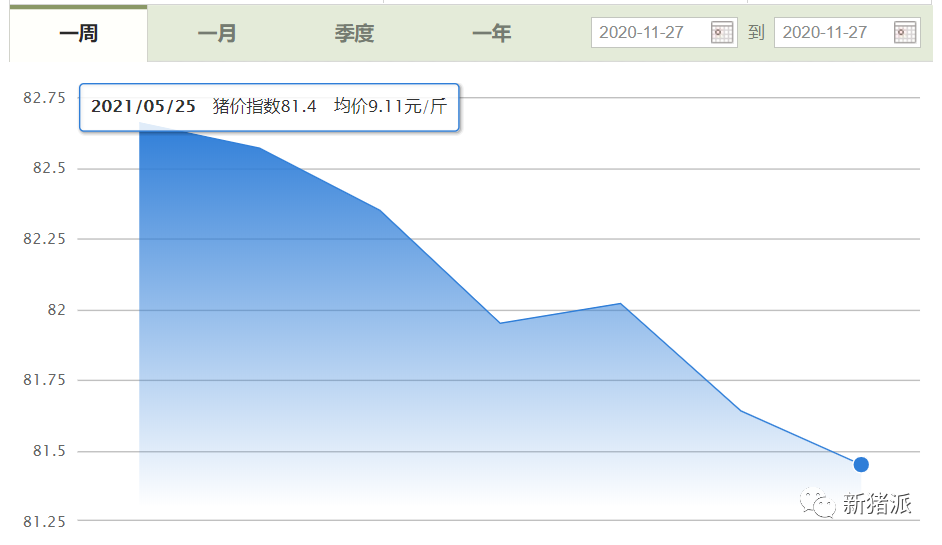 近期,猪价持续走低,全国均价跌破10元/斤,5月25日均价在9.11元/斤。